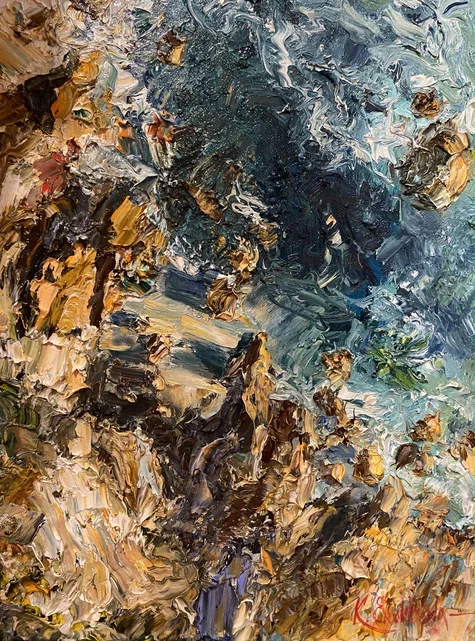 Несмотря на то, что эмоции присущи людям, полотна автора практически абстракты, некоторые изображают морские пейзажи. Именно через природу, стихии, а также предметы она передаёт состояние души, зачастую — собственной, ведь во время написания картины она работает не только над полотном, но и над собой. В результате рождаются снимки, запечатляющие душевные порывы и настроения — их, а также другие работы, вы сможете рассмотреть на выставке.