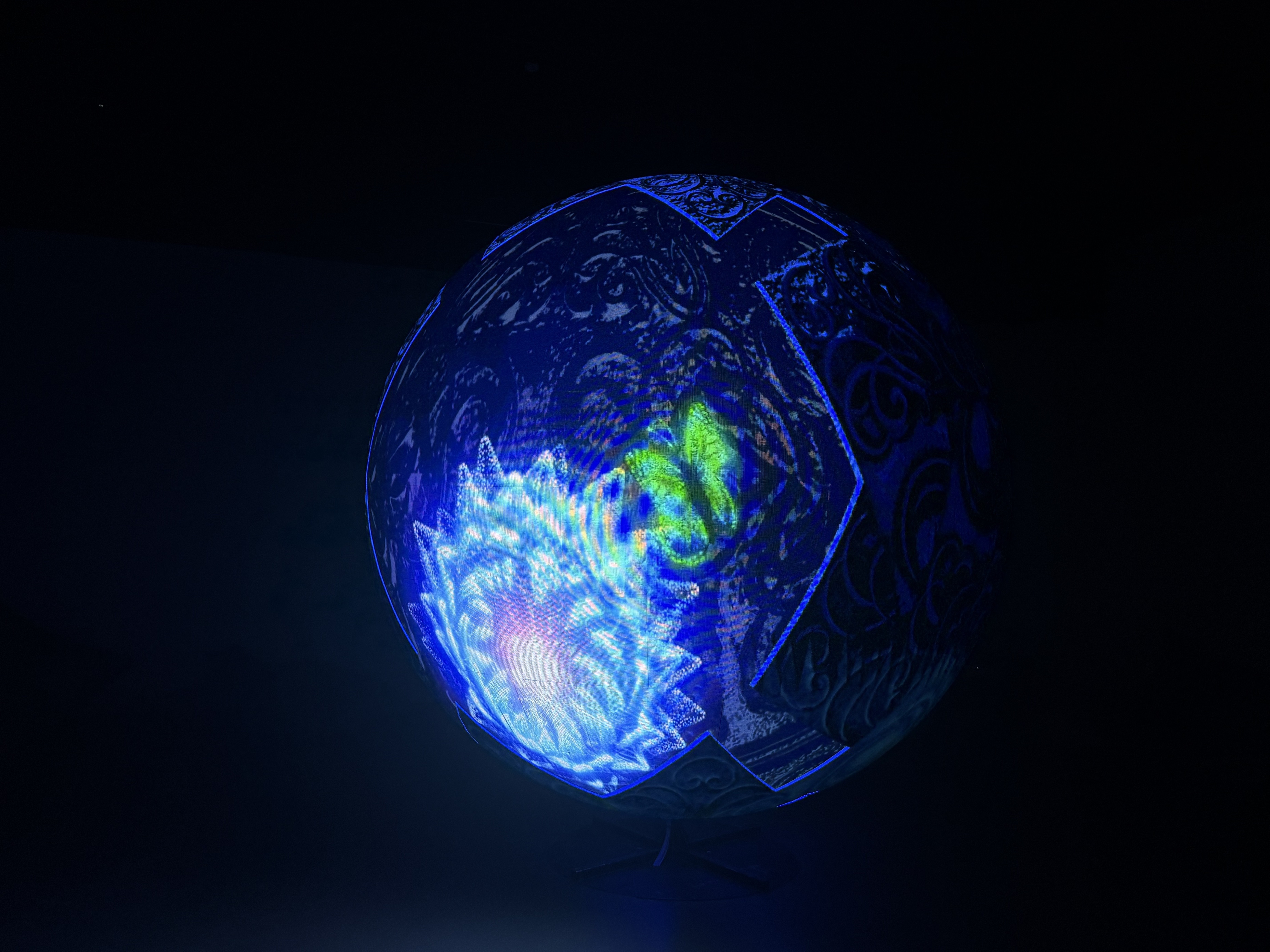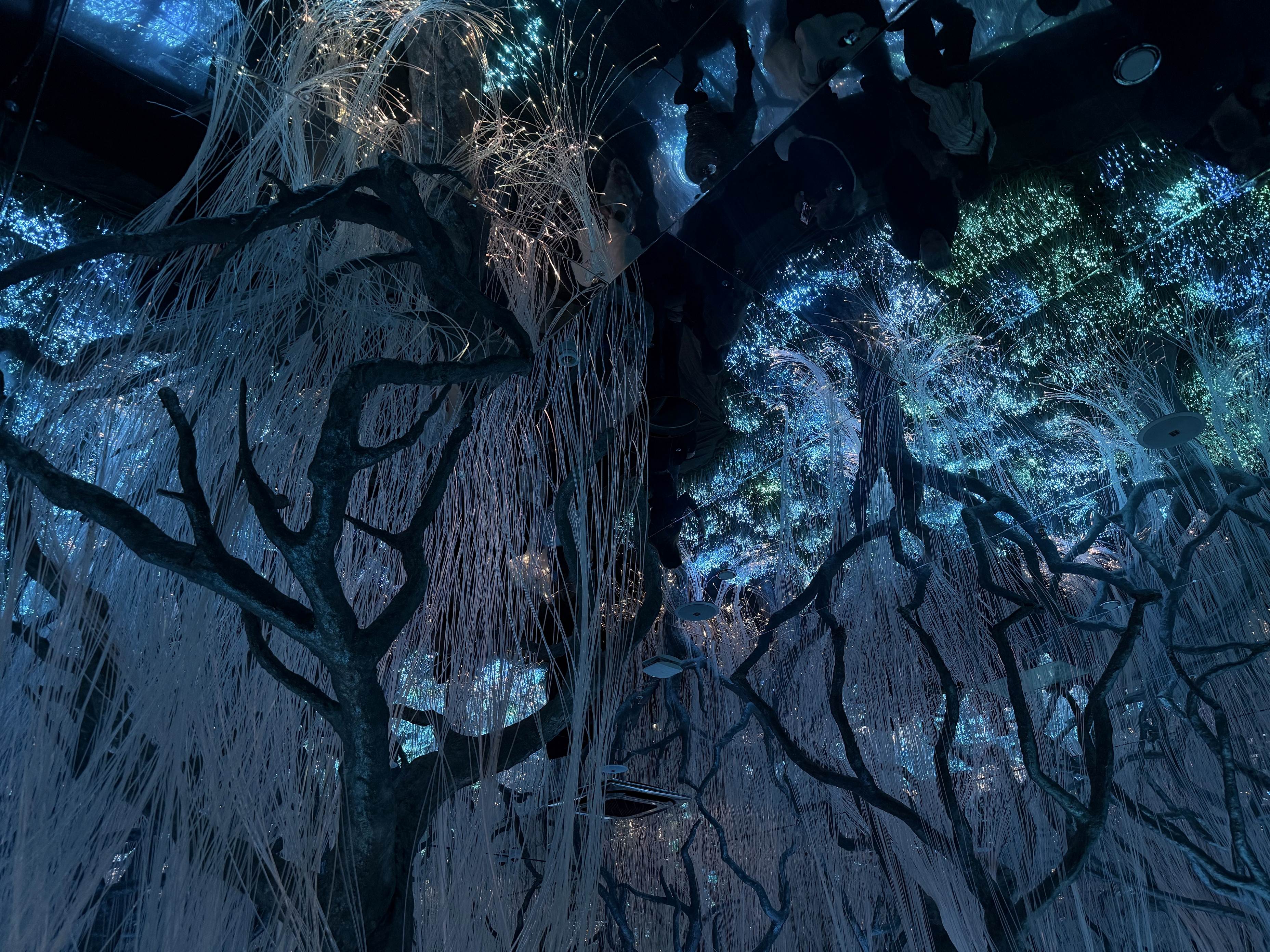 Посетители могут прогуляться по восьми мультимедийным залам: «AI-куратор», «Волшебный лес», «Сфера», «Гуманоид», «Восторг», «Поток эмоций», «Бесконечность» и «Звук». В каждом из них выставлены разнообразные экспонаты, созданные на стыке материального и виртуального — от интерактивных инсталляций до генеративного искусства. Например, в одном из залов гостей приветствует антропоморфный робот, а чтобы попасть в другой, придётся пройти через шестиугольный световой туннель.