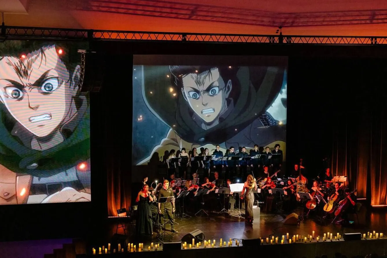 Виртуозное исполнение симфонического оркестра дополнит аудиовизуальное шоу — на экране будут выводить самые драматичные сцены из аниме, которые заново погрузят в историю солдат Разведкорпуса в постапокалиптическом мире. В программе концерта: Guren No Yumia, YouSeeBIGGIRL, Great Escape (в переводе Ю. Решетняк), Call of Silence - Sawano Hiroyuki, T-KT и другие. Продолжительность концерта: 1 час 20 минут