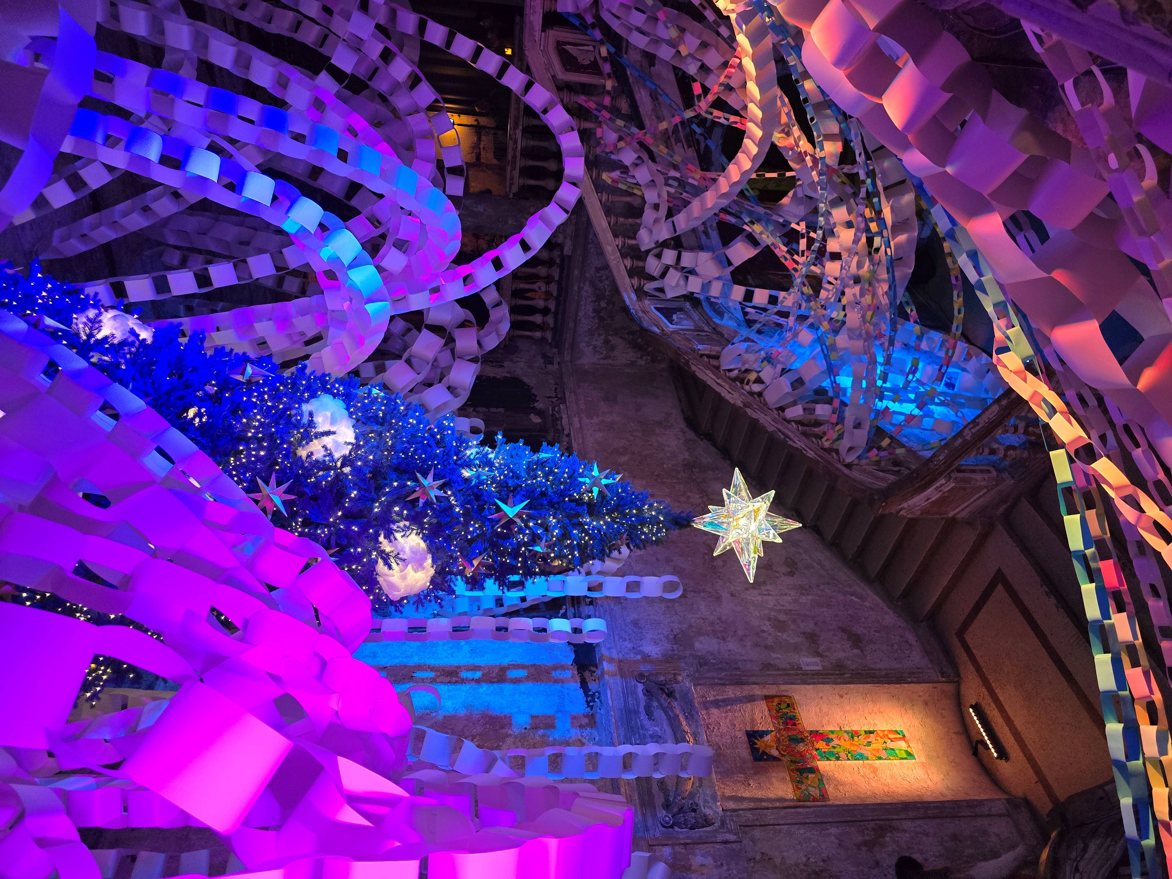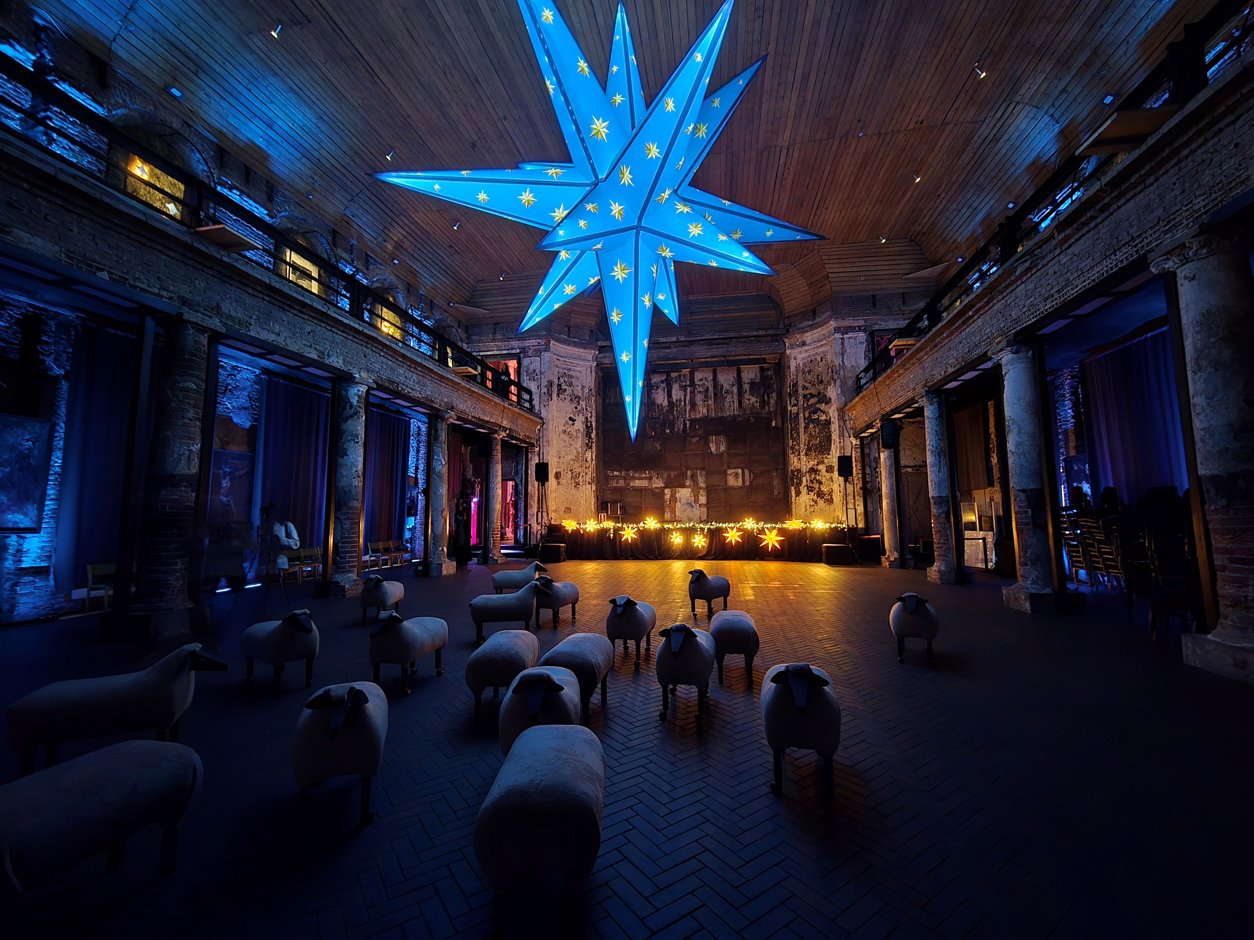 Сравниться с ёлкой по масштабам может восьмиметровая надувная Вифлеемская звезда в Богослужебном зале. Здесь же установлены милые сиденья в виде барашков, откуда удобно любоваться необычным небесным явлением.
