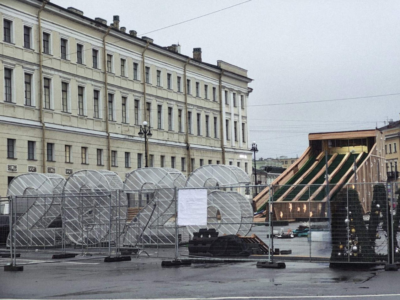 Вместе с ёлкой на Дворцовой появилась и Рождественская горка. Восьмиметровую конструкцию начали возводить рядом с Певческим мостом ещё в ноябре. Официально для посетителей её откроют 13 декабря. Кататься на горке можно будет бесплатно, а особое покрытие сделает спуск доступным при любой температуре. Рядом откроется рождественская ярмарка, которую украсят в русском стиле.