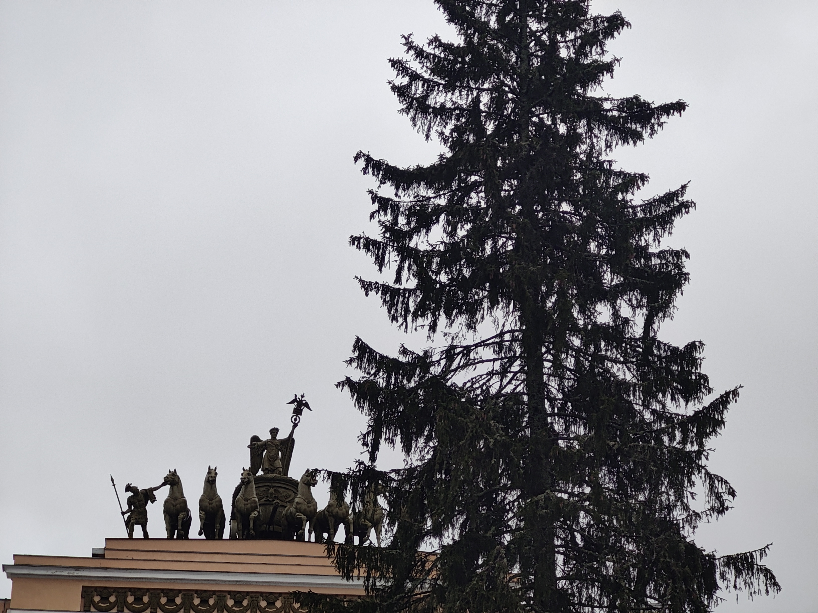 Пока дерево на Дворцовой выглядит не слишком празднично. Более того, многие уже успели отметить, что в центральной части кроны не хватает нескольких веток. Как сообщают городские службы, «дыру» планируют закрыть дополнительными еловыми лапами. Проблему должны решить к 20 декабря, когда состоится церемония зажжения огней.