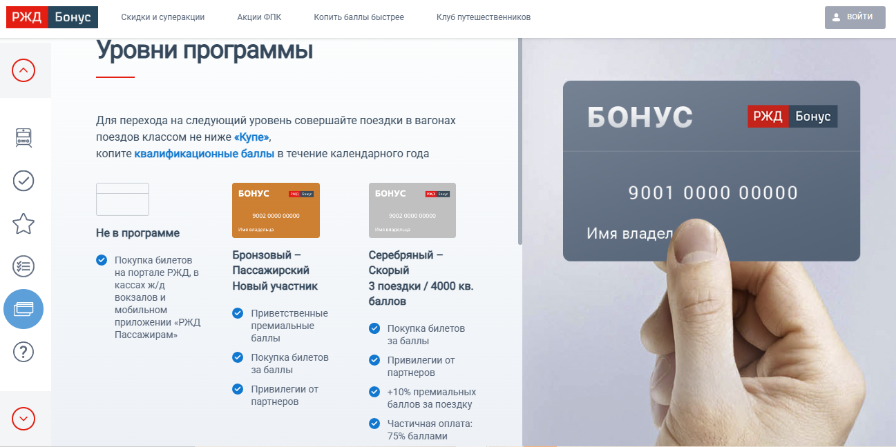 Как мы писали выше, «РЖД Бонус» — программа в которой можно копить баллы с покупки билетов на поезд. В программе есть разные уровни и возможности: