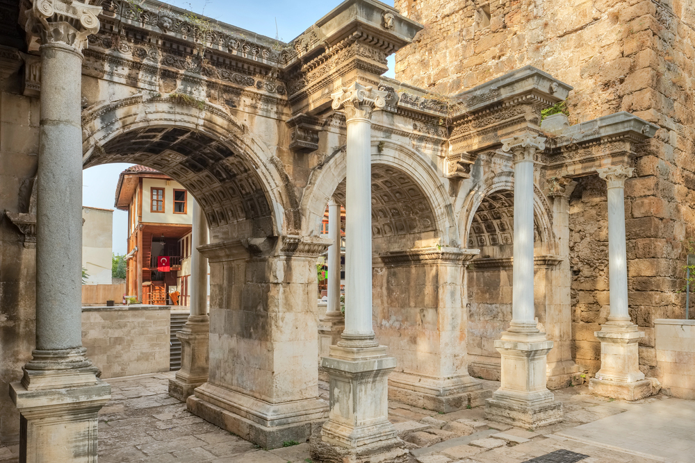 Ворота Адриана — исторический въезд в город и одно из древнейших сооружений Антальи. Сохранились фрагменты римской дороги, которые видно под ногами.