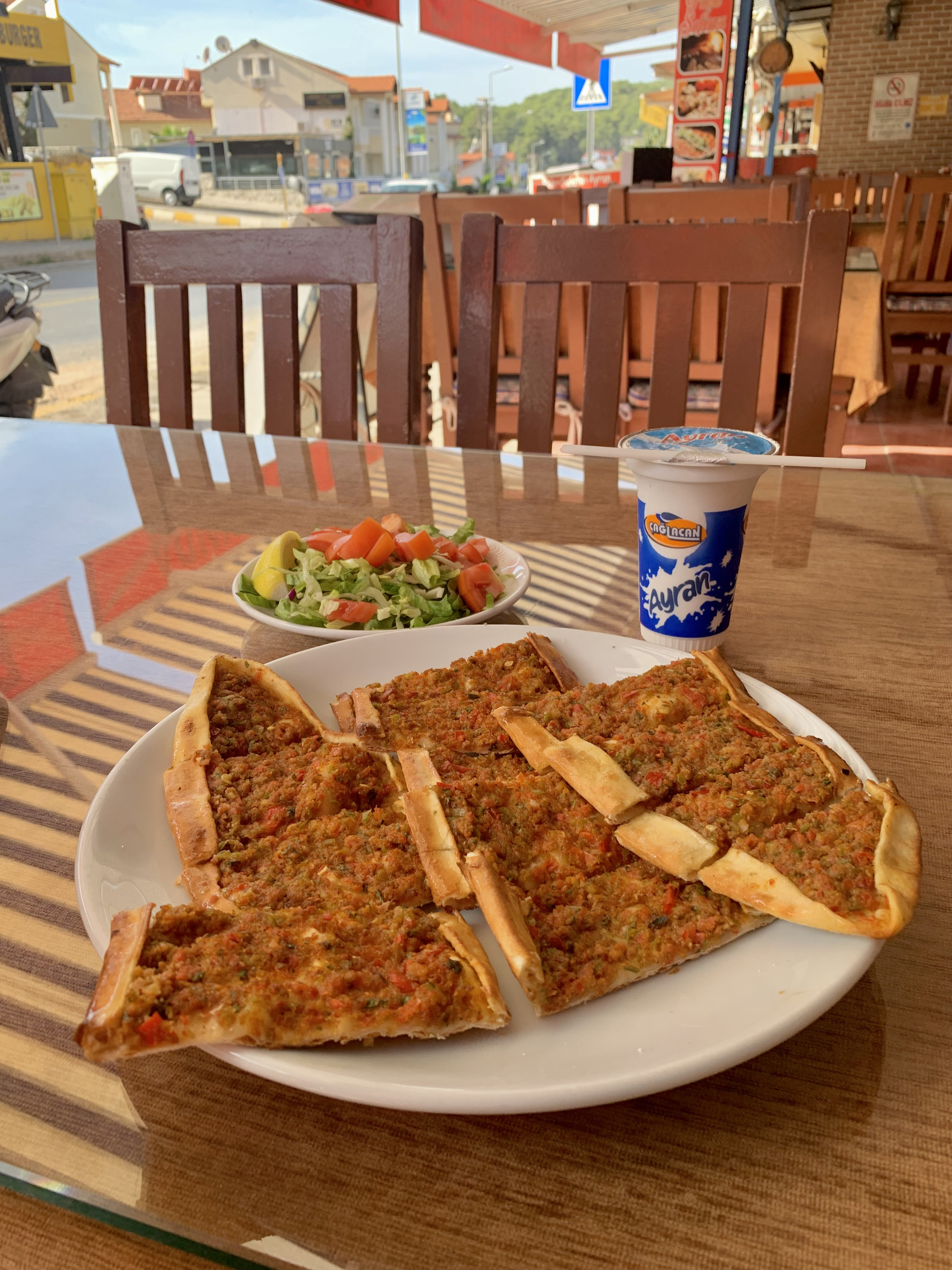 — Пиде — тонкая лепёшка с мелким фаршем и овощами, напоминающая пиццу;