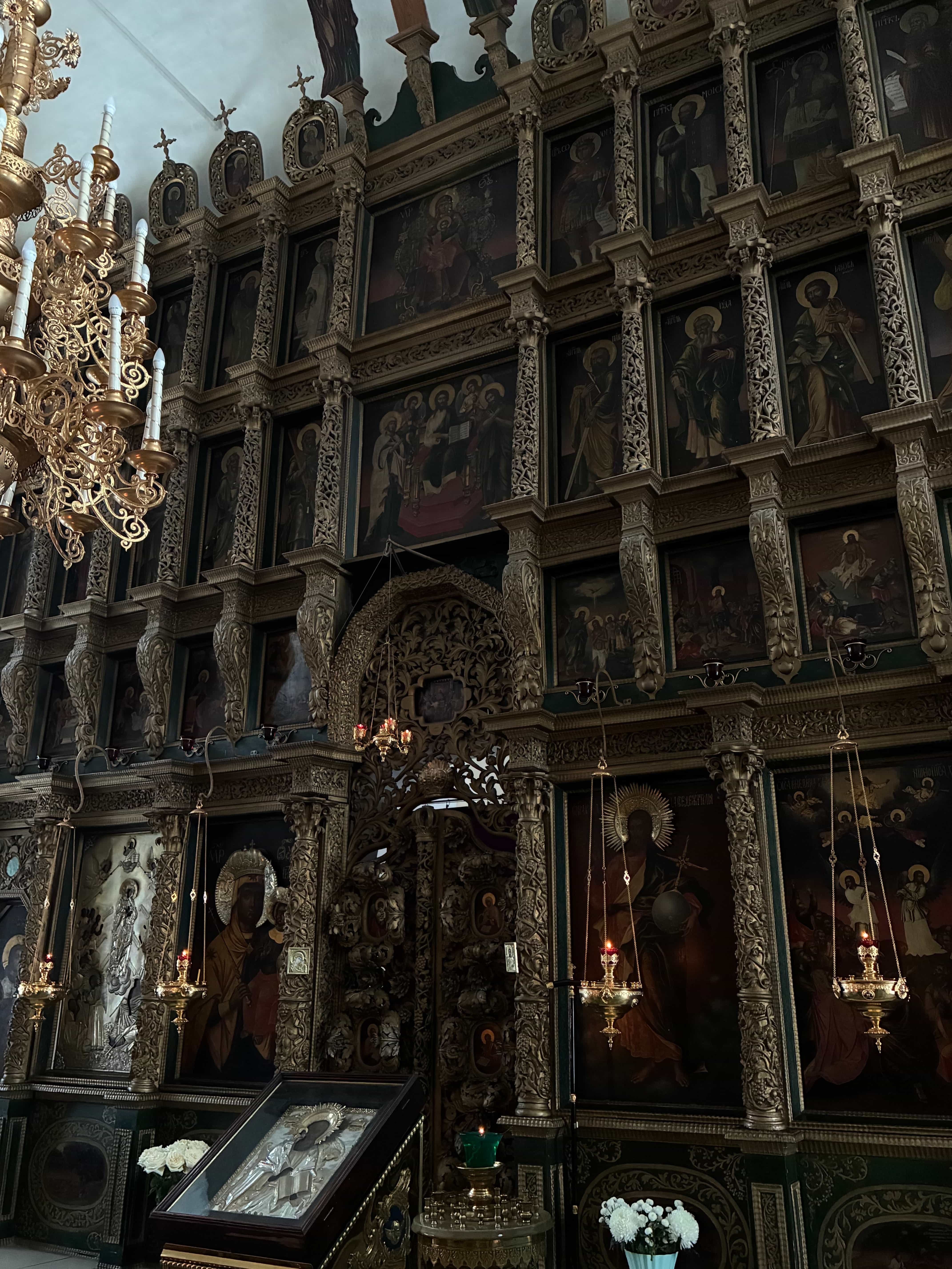 Во время поездки из всех церквей мы посетили только эту. Поднимались в верхний Вознесенский храм, разглядывали дивный резной иконостас и любовались иконами. Внутри работает магазинчик, где можно купить свечи и подать требы. Храм также принимает пожертвования на работу.