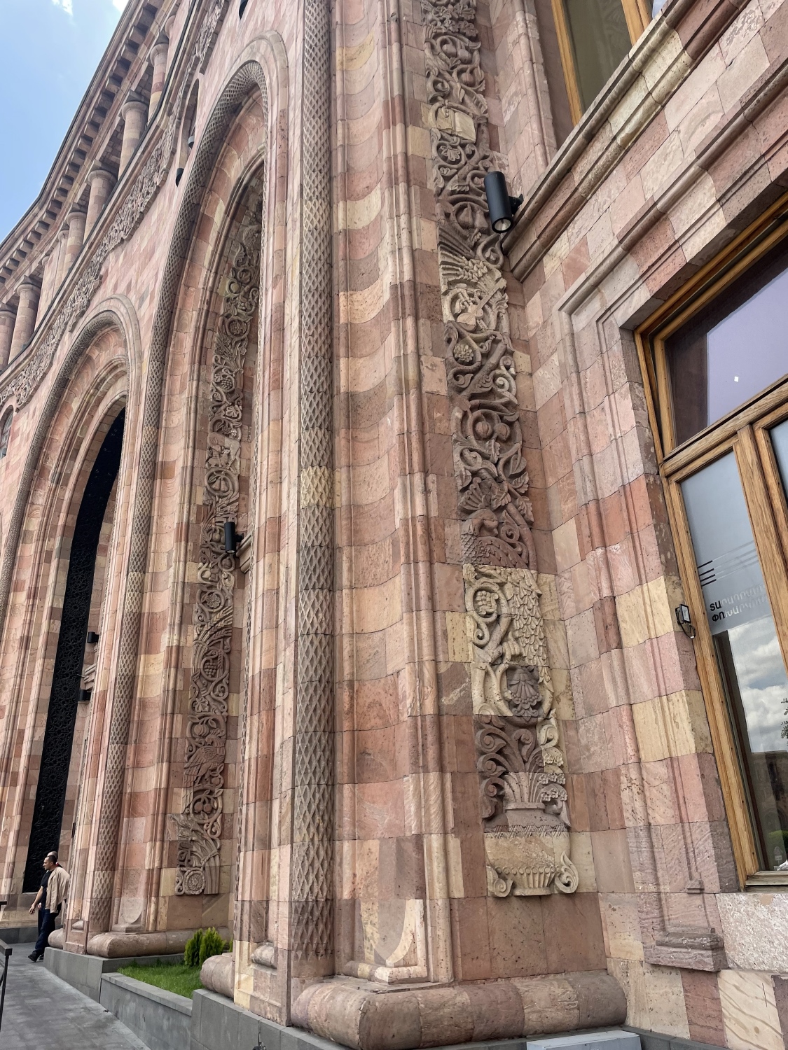 Даже самые скучные советской постройки имеют довольно явные армянские черты: в декоре можно заметить резьбу, вдохновленную хачкарами или же древнеармянские символы, которые нередко можно увидеть на фасаде монастырей.