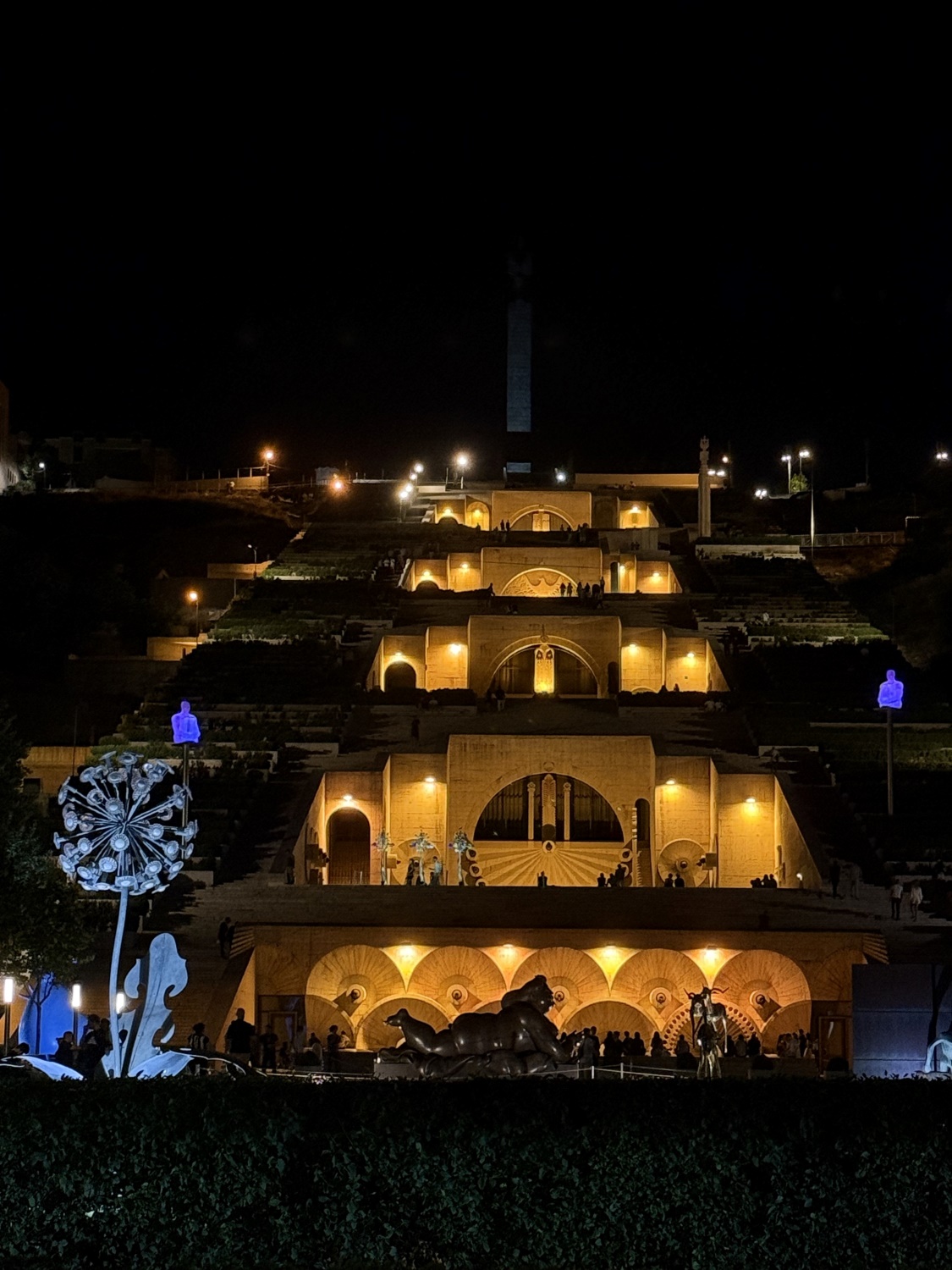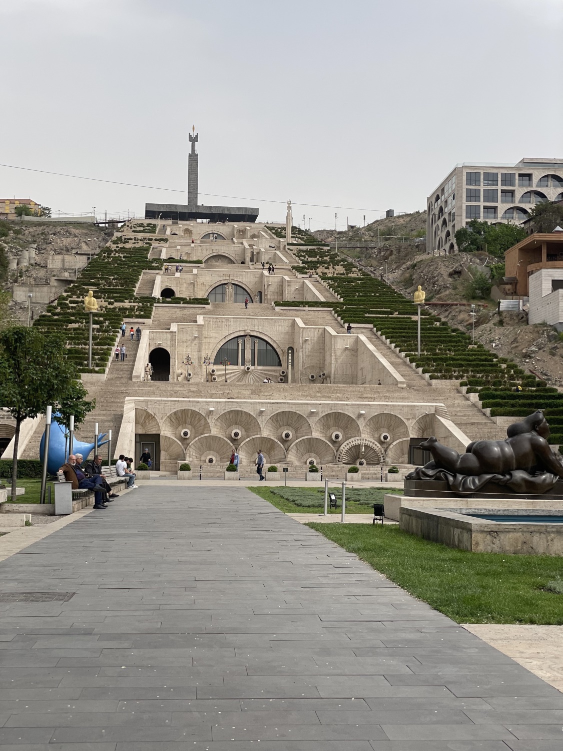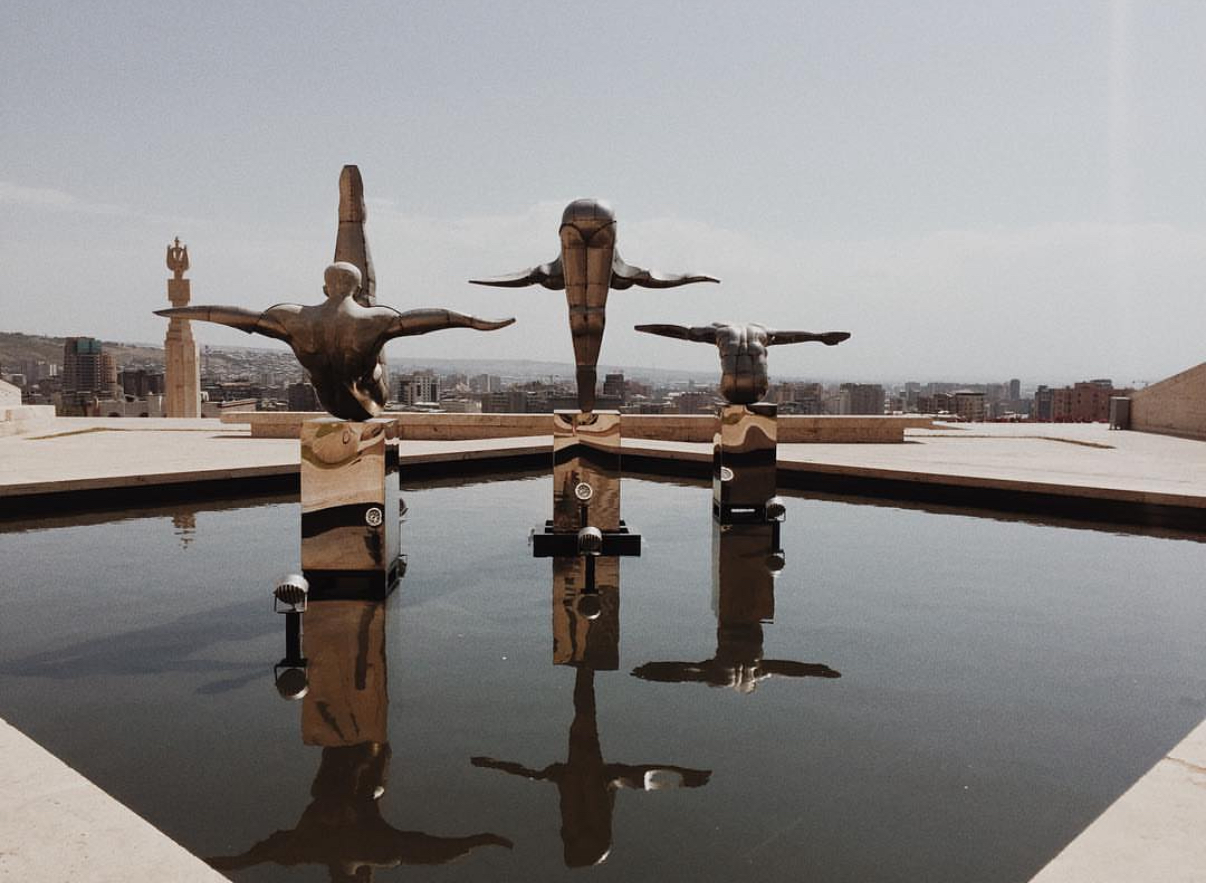 Перед музеем-лестницей растянулся «парк скульптур», где можно увидеть, например, работы известного колумбийского художника Фернандо Ботеро, а «Дайверы»  британского мастера Мартина Уоллера и вовсе стала неофициальным символом Еревана.