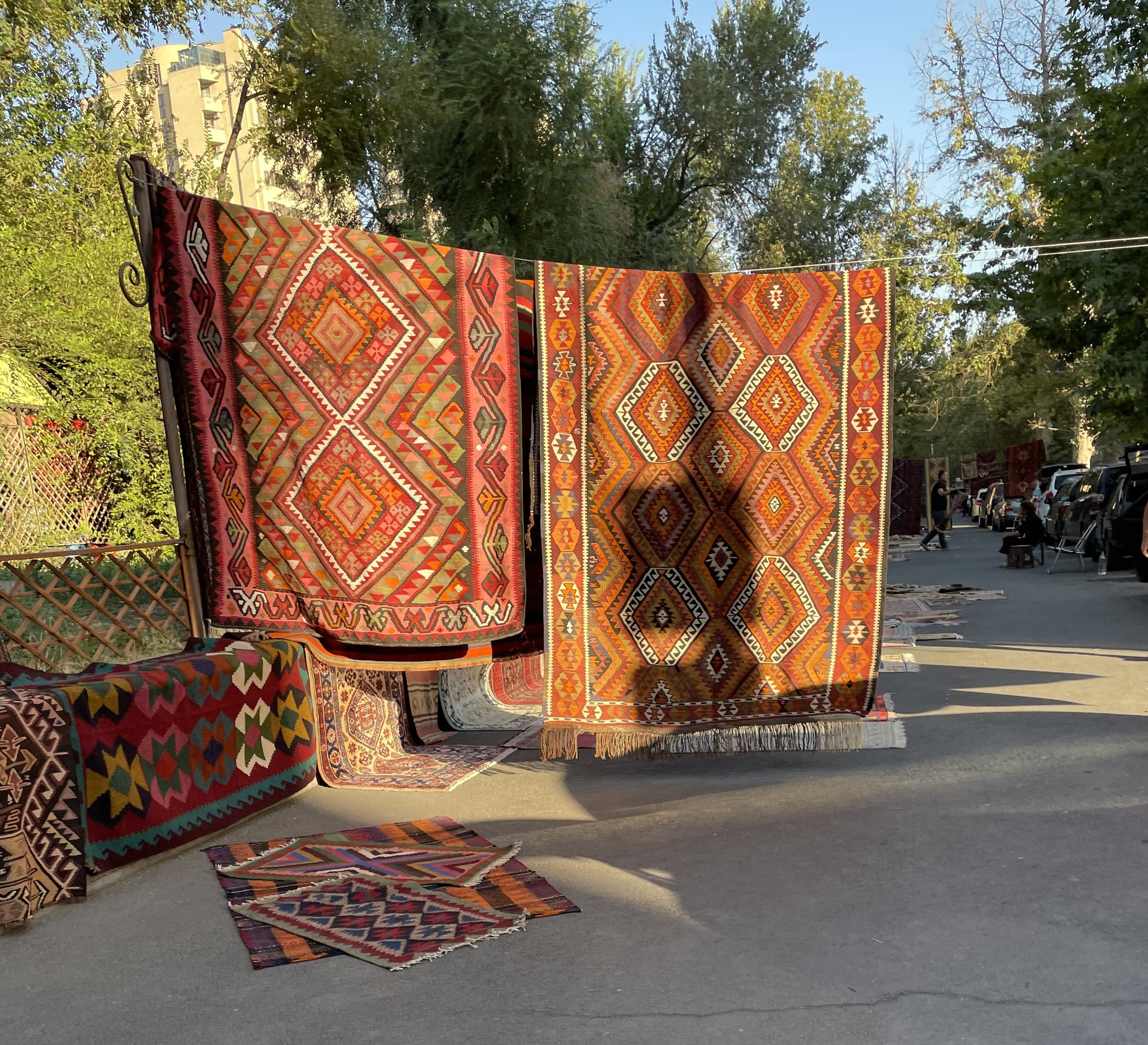 На ереванском Вернисаже (местном блошином рынке) стоит искать не только картины и украшения, но и скатерти ручной работы — с традиционной армянской вышивкой и орнаментами. Каждая — маленькое произведение ремесленного искусства. Это лучший сувенир из Еревана, если вы любите собирать друзей за столом, как это принято во всех армянских домах.