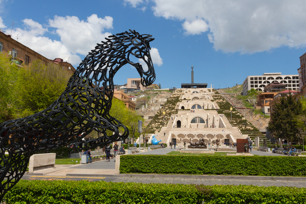 Монументальная лестница с 572-мя ступенями — более чем достойный ответ Испанской лестнице в Риме.  Каскад, задуманный архитекторами Джимом Торосяном, Саркисом Гурзадяном и Ашотом Меликяном в 1970-е, стал символом города. Отсюда открывается тот самый вид на Арарат: пейзаж становится ярче с каждым пройденным пролётом.