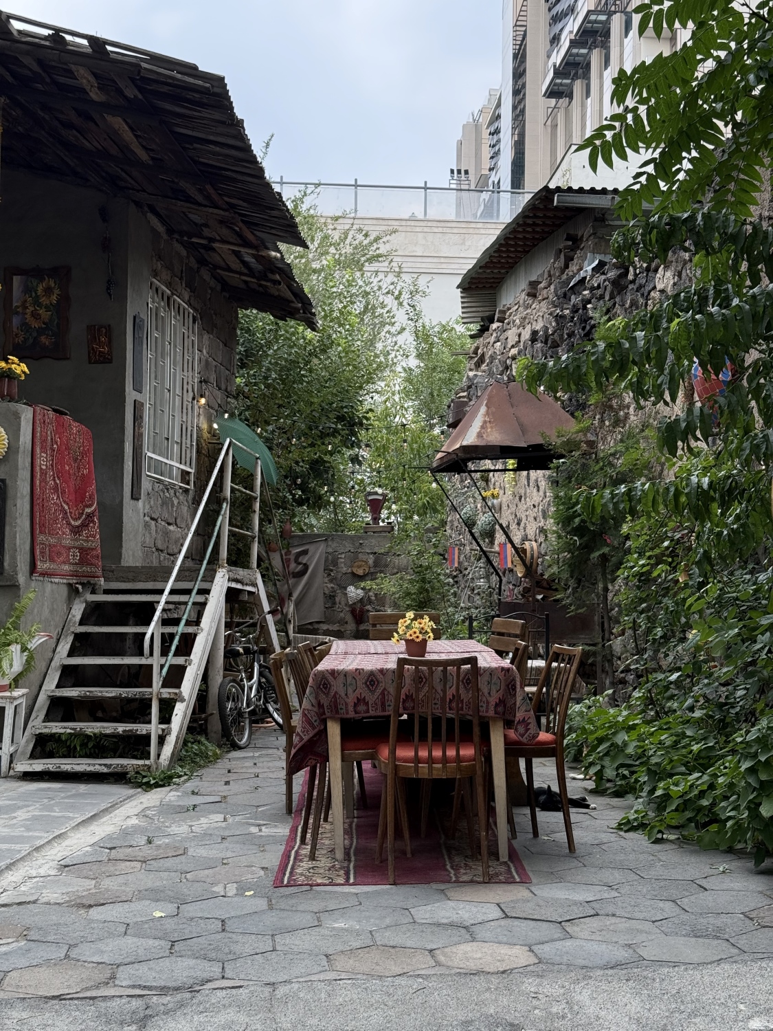Каждый номер оформлен в честь армянских легенд и мифических персонажей, а само здание на улице Абовяна, старейшей улице города, хранит атмосферу того Еревана, которого уже почти не осталось. Мало какой отельный номер может похвастаться тем, что в его стенах творил сам Арам Хачатурян — легендарный армянский композитор, автор музыки к балету «Спартак» и одного из самых узнаваемых танцев в мировой классике.