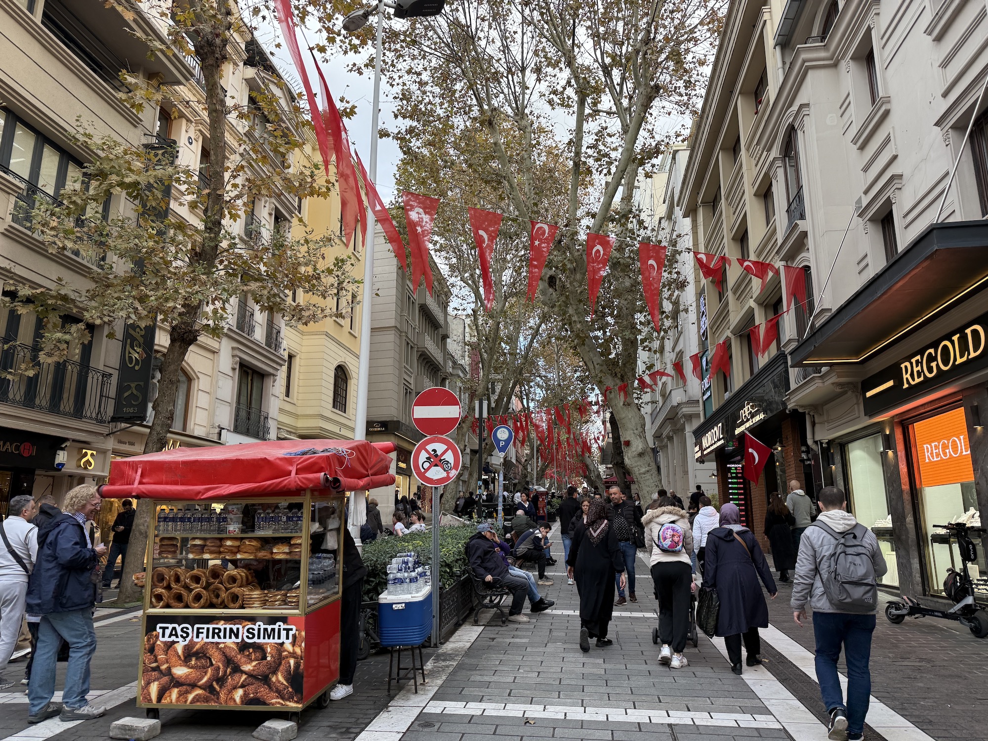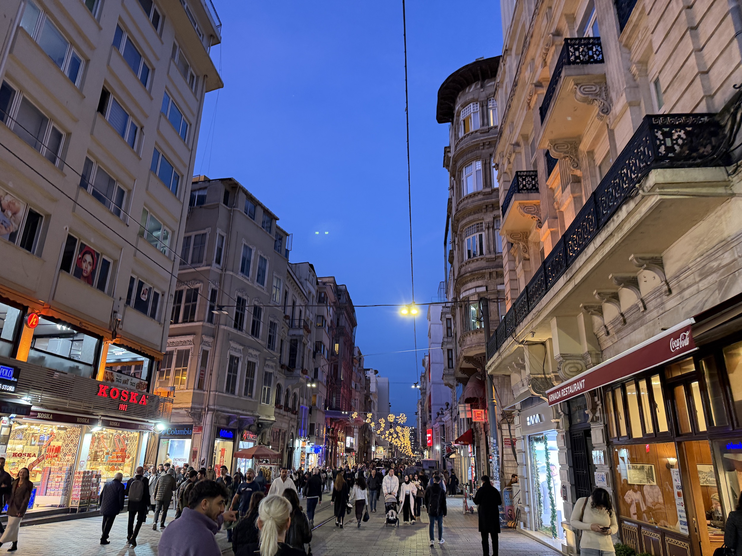 Улица Истикляль, пожалуй, самый оживлённый бульвар в Бейоглу. Он пешеходный, за исключением ретро-трамвая, который ходит по маршруту Т2 от остановки «Туннель» до «Таксим». Красный вагончик с решёткой вместо привычной двери воссоздан по образу модели начала XX века и служит больше фотозоной, чем транспортом.