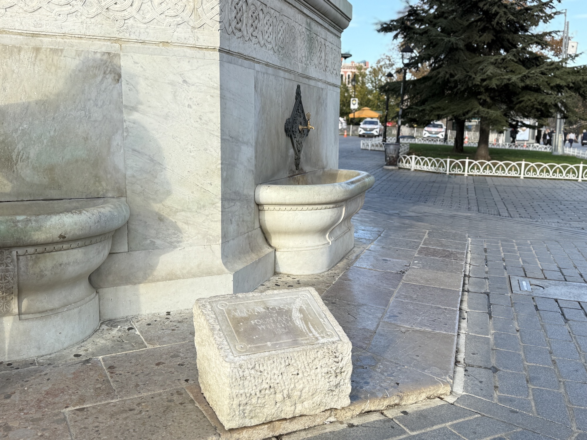 Немецкий фонтан. Подарок от императора Вильгельма II султану Абдул‑Хамиду II. Все детали этого сооружения в неовизантийском стиле изготовили в Германии и доставили в Константинополь в 1901 году. Оно напоминает беседку и выглядит очень изящно, однако не является фонтаном в привычном смысле слова: по сторонам основания расположены краны с водой, раньше — питьевой, теперь — водопроводной.