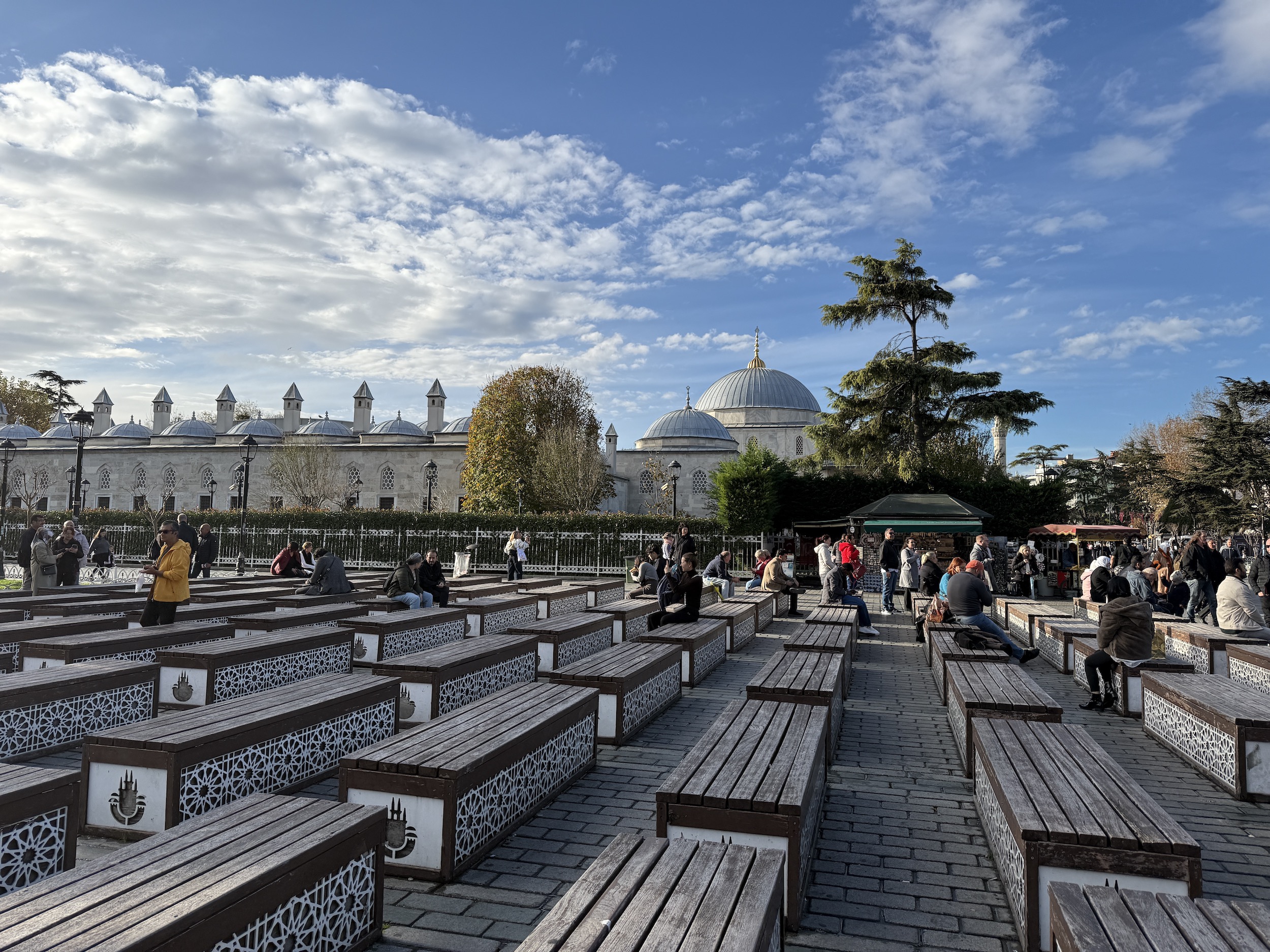 В километре от Египетского базара находится мечеть Сулеймание. Она стоит немного в отдалении от других достопримечательностей, в старом микрорайоне Вефа, и выбивается из маршрута. Я советую по возможности сделать этот круг и посмотреть на древнее османское сооружение, мечеть очень красивая. К тому же, так удастся миновать самые оживлённые улицы у базара, где приходится прокладывать себе путь в плотном потоке людей.