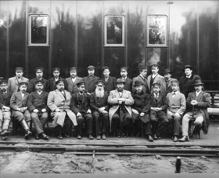 Фото: Неизвестный автор. Групповой портрет железнодорожников. 1910-е / russiainphoto.ru