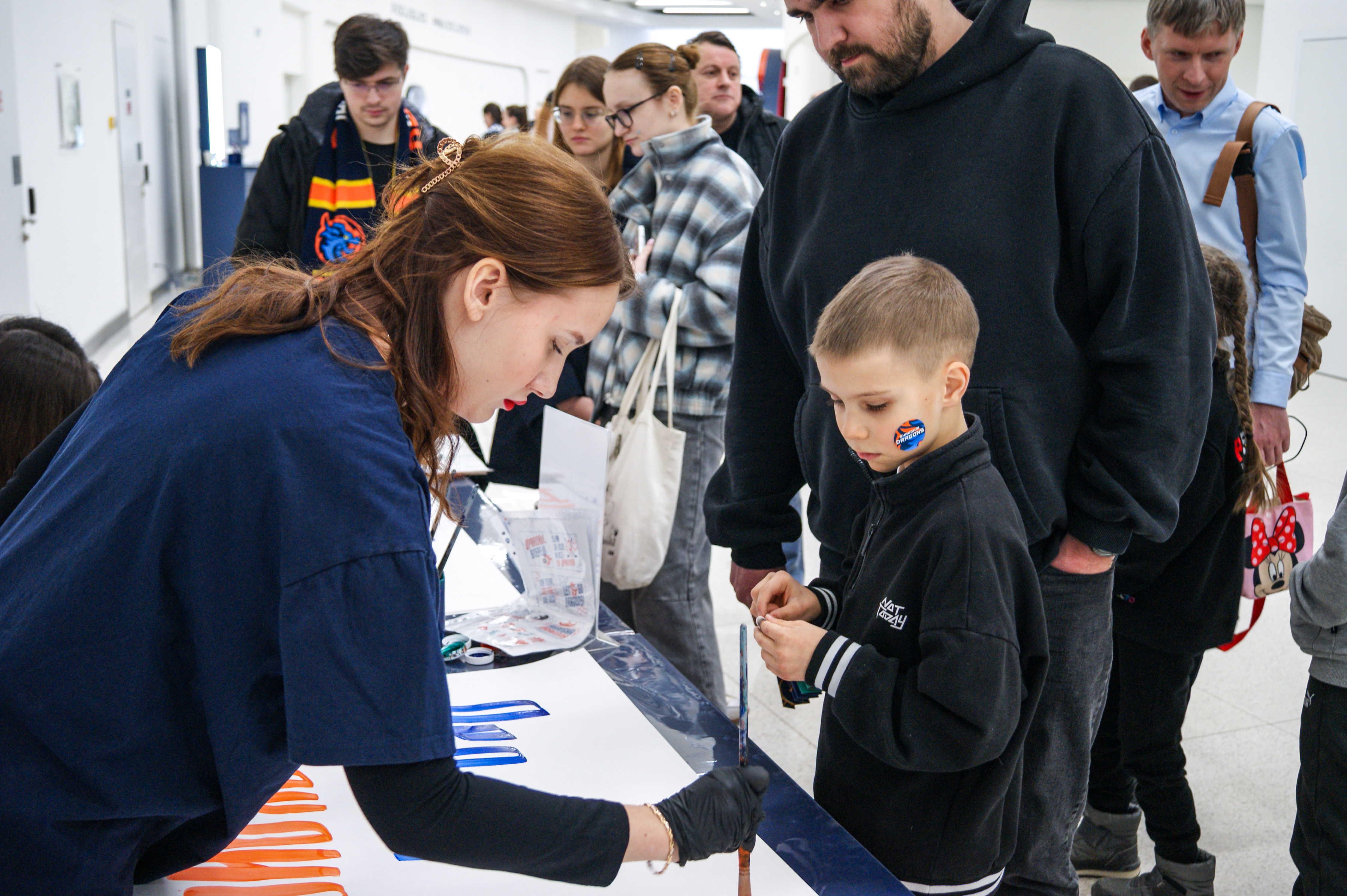 После активного старта болельщики выдыхают: кто-то отправляется за китайским стрит-фудом, кто-то пробует интерактивные развлечения в чаше арены — аквагрим, настольный хоккей, фотобудку, видеоигры. Другие обсуждают игру или смотрят трансляцию олимпийского хоккея. Здесь царит атмосфера настоящего спортивного праздника.