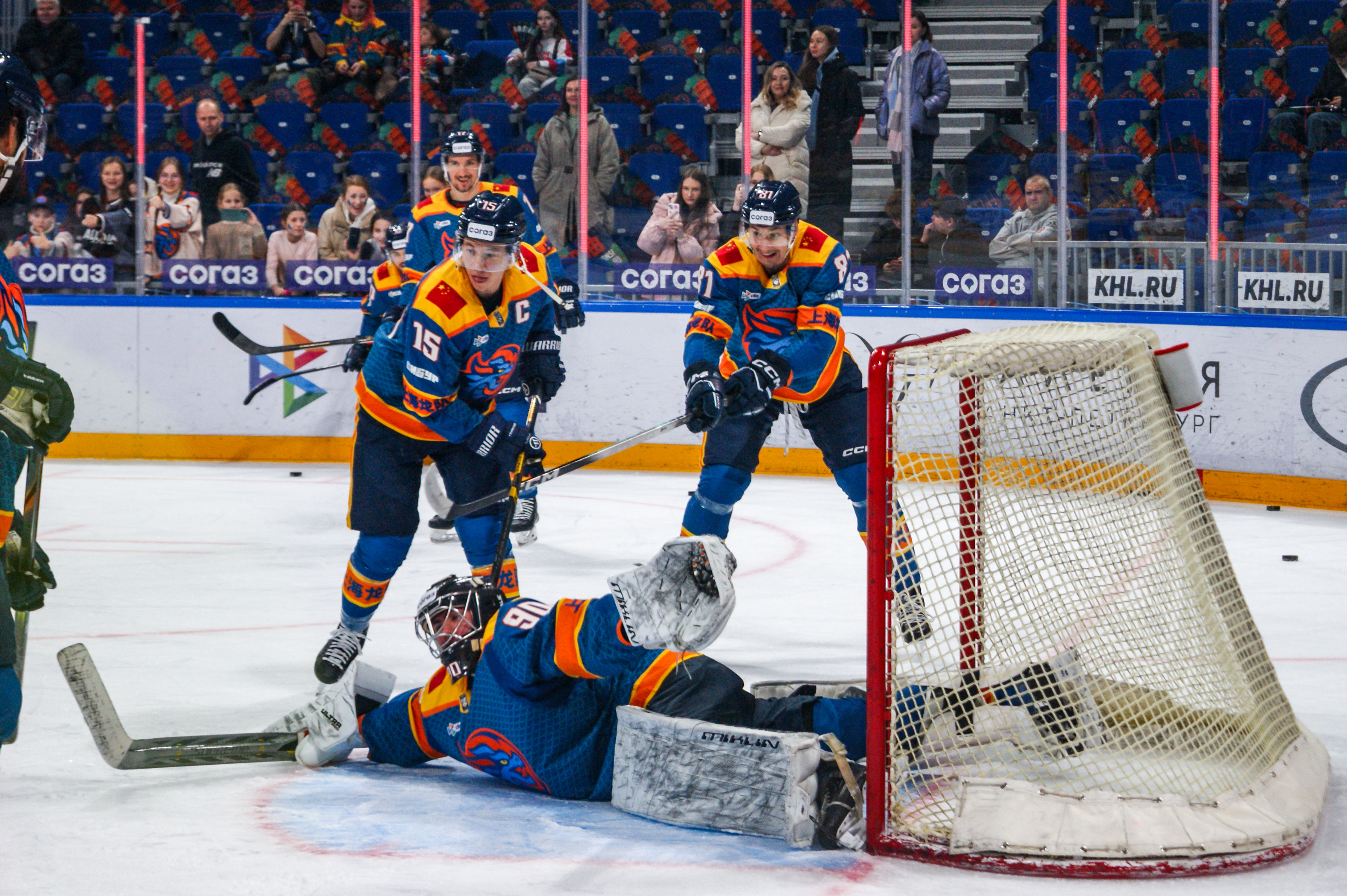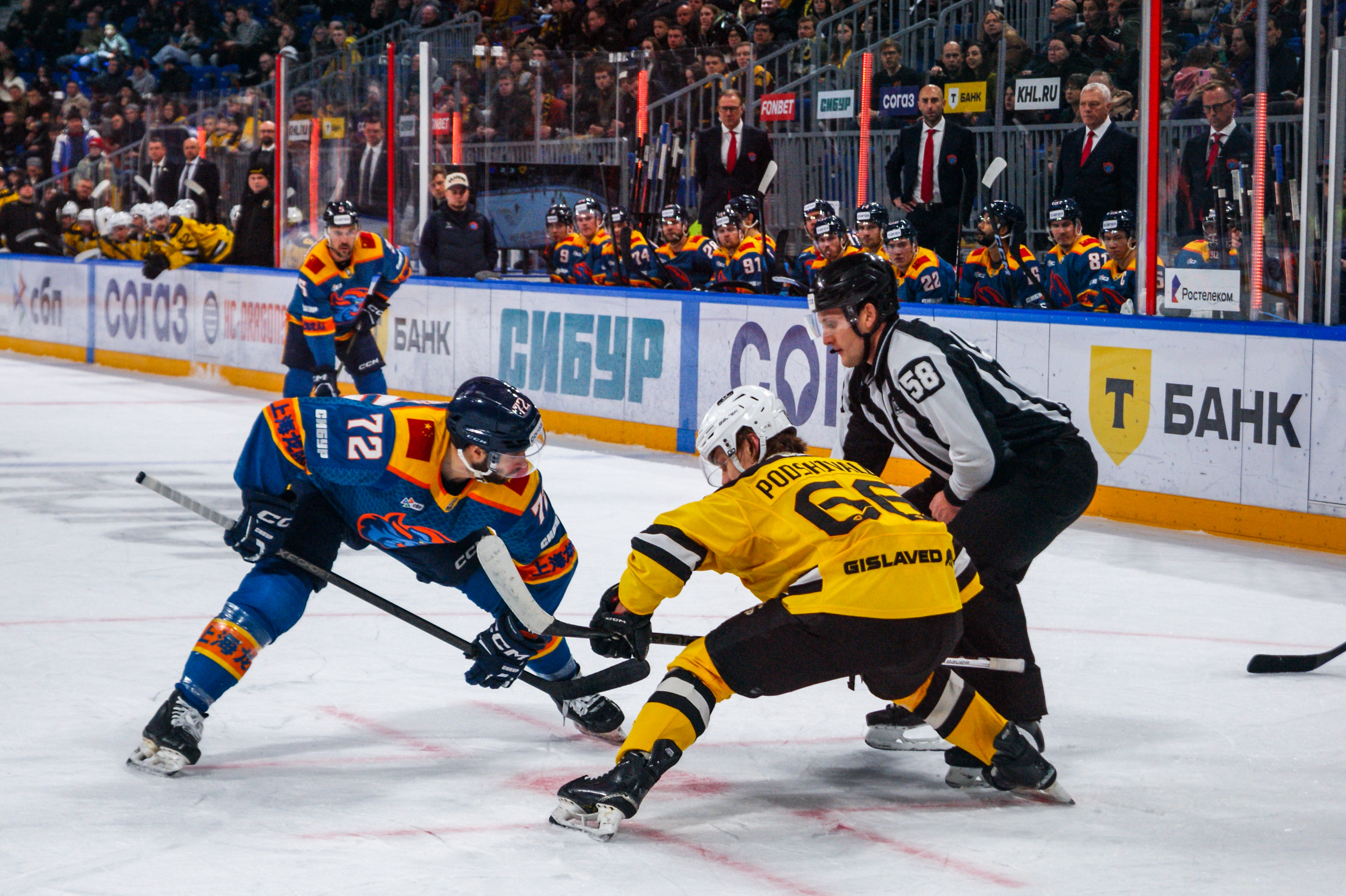 Световое шоу и боевая музыка возвещают о начале матча. Конечно, больше всего её ждали фанаты — их сектор тут же взрывается кричалкой «Драконы с Невы!». Гости отвечают не менее громко. Уже на первой минуте хозяева получают малый штраф за выброс шайбы. Вскоре следует еще одно удаление — Остин Вагнер наказан за подножку. Гости реализуют большинство: Данил Аймурзин открывает счет.