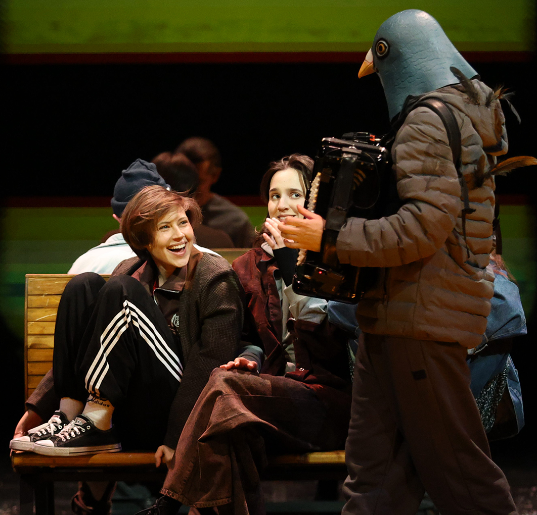 Своеобразными вспышками в действие врывается не только взбалмошный профессор, но и птицы в кокошниках, точнее вокалистки из musicAeterna. Их голоса, словно волшебное покрывало, окутывают зал песнями, в том числе на стихи Константина Бальмонта. А располагаются артистки, как и положено птицам, на «ветке» — в боковой ложе над сценой.